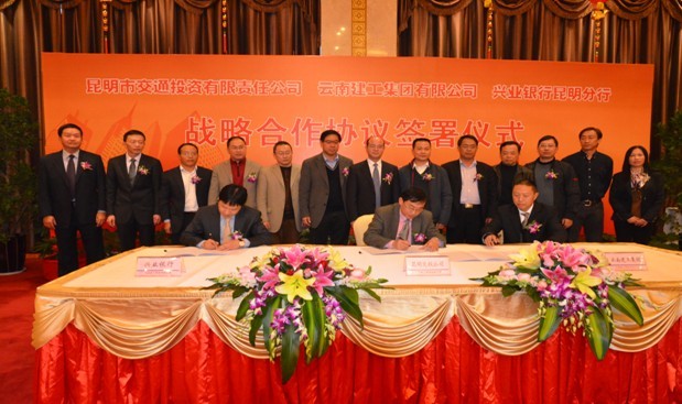签字仪式上,我公司还与云南建工集团签署双方合作协议,就我公司下属昆明交投河砂资源开发有限公司与云南建工集团有关合作事宜达成意向:双方将开展在混凝土生产与销售、建材购销及其他相关领域的合作。