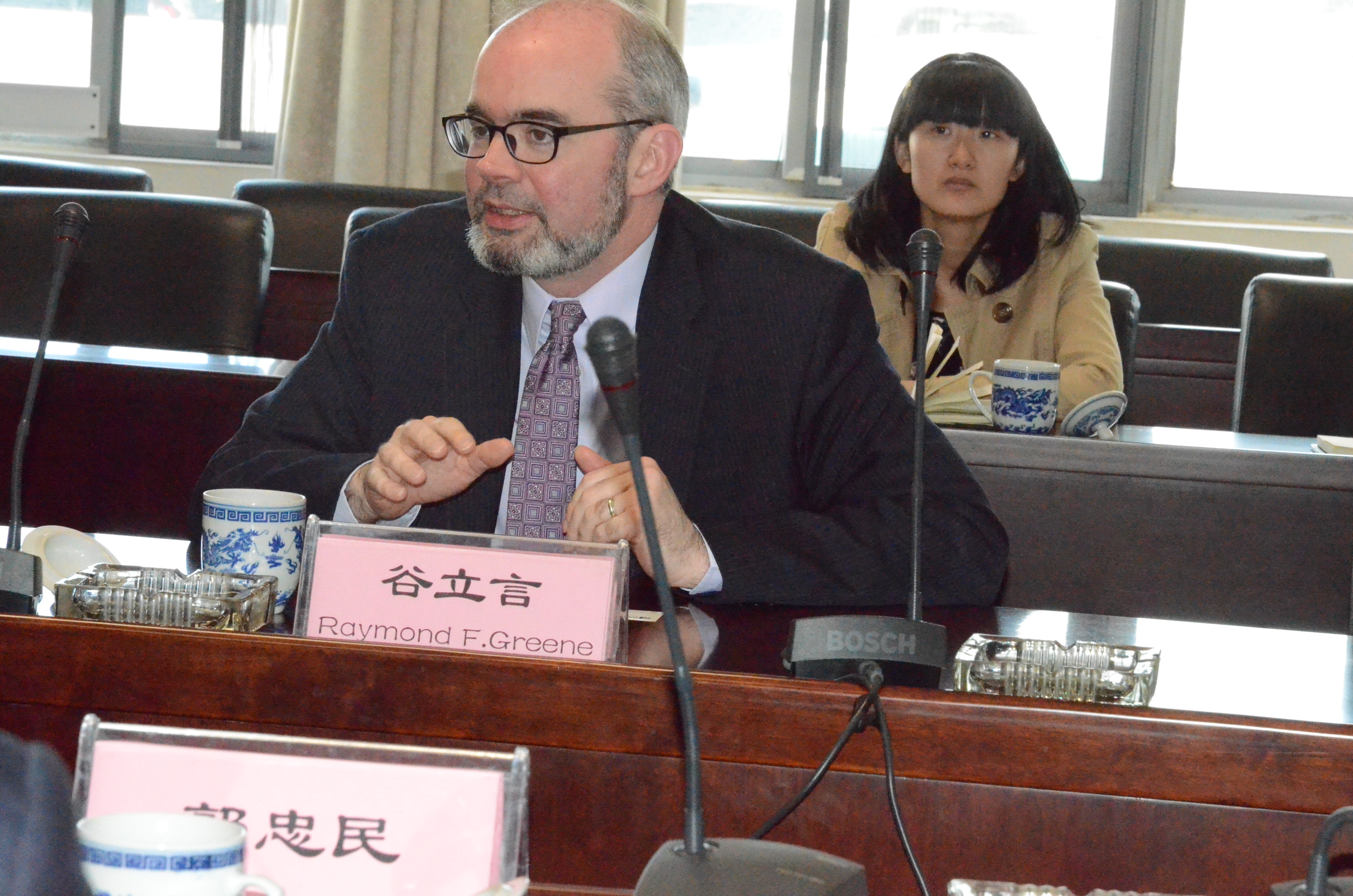 2015年4月3日下午,美国驻成都领事馆总领事谷立言、林同棪国际集团(TYLI)董事长邓文中等一行8人到访公司,公司副总经理许哨及相关下属公司负责人参与接见,双方在会议室举行了座谈会。