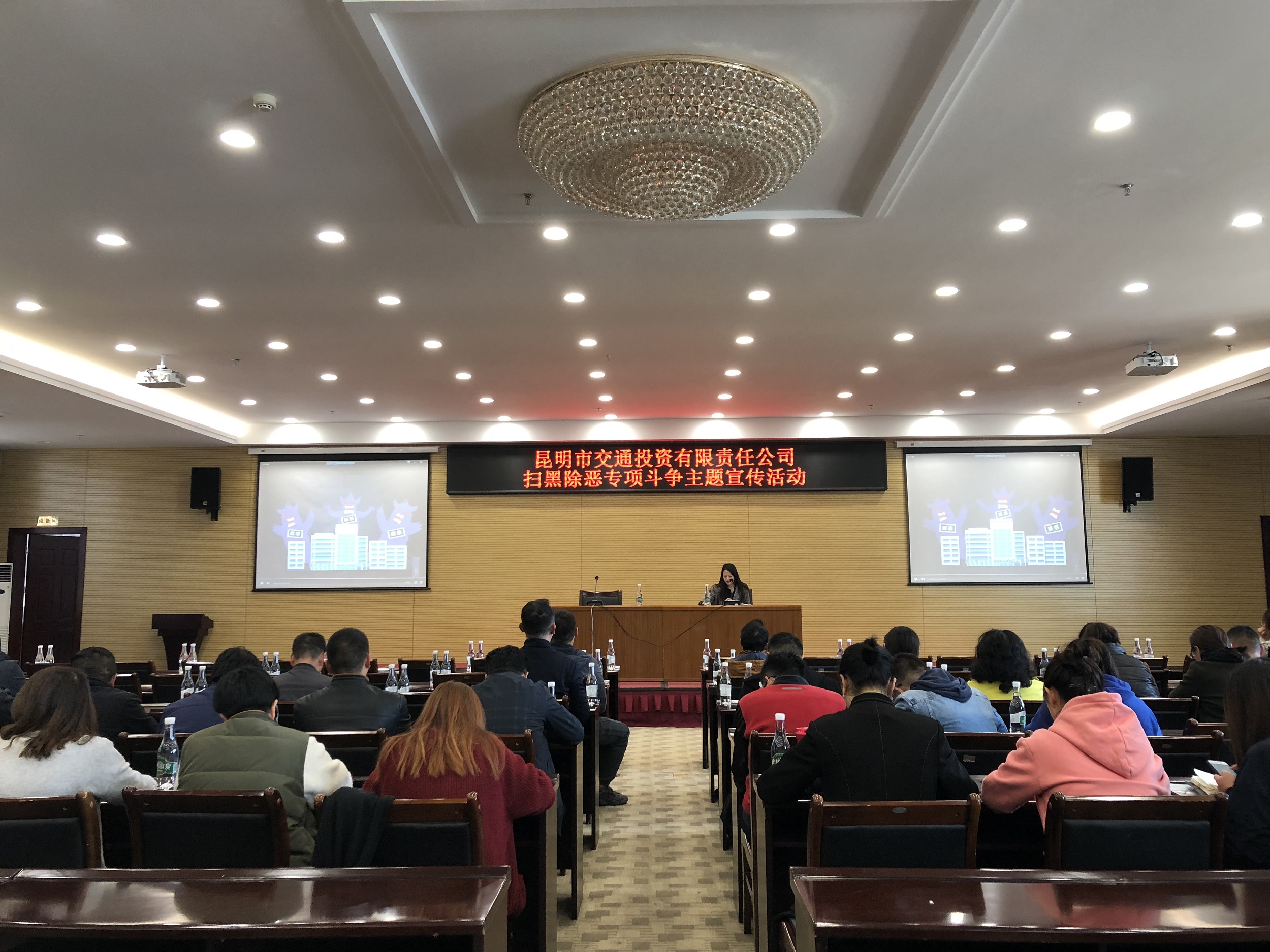 为进一步落实《云南省司法厅 云南省普及法律常识办公室关于在法制宣传教育工作中进一步深化扫黑除恶专项斗争主题宣传教育活动的通知》要求,市交投公司于2019年3月19日组织开展了以“扫黑除恶专项斗争”为主题的宣传活动。公司领导、本部职工代表、子公司职工代表共80余人参加此次活动。