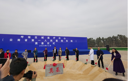 2020年12月20日14:00,呼吸区域医疗中心(云南省第一人民医院东院)奠基仪式在东骏置业负责实施土地一级开发的凉亭片区B地块项目建设现场举行,副省长李玛琳、省政府副秘书长彭耀明,中国工程院副院长、院士、中国医学科学院北京协和医学院院长王辰;中日友好医院有关负责人,省发改委、省卫健委有关负责人;市政府、区政府有关领导出席了奠基仪式。昆明交投公司党委书记、董事长雷升逵、昆明东骏置业有限公司(以下简称“东骏置业”)领导班子全体成员参加奠基仪式。