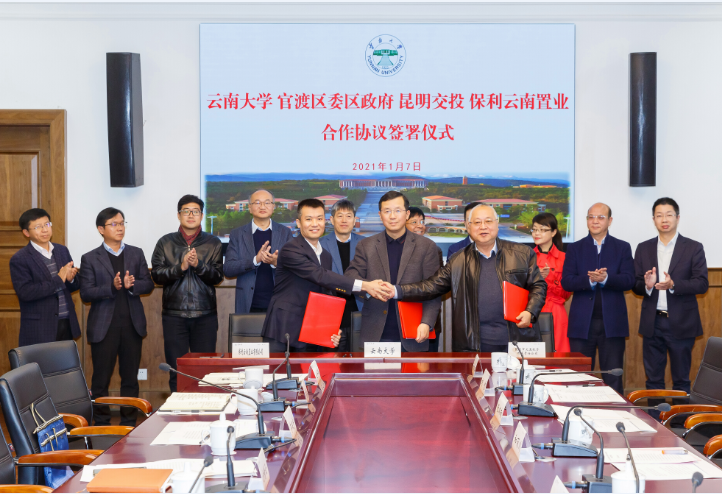 2021年1月7日,云南大学、官渡区委区政府、昆明市交通投资有限责任公司、保利云南置业有限公司合作协议签署仪式在云南大学呈贡校区举行。昆明市官渡区委书记和丽川、区长周燕,保利置业集团有限公司董事会主席张炳南,昆明市交通投资有限责任公司董事长雷升逵、总经理金炜,云南大学校长方精云院士,党委副书记李建宇,常务副校长李晨阳出席签约仪式。出席仪式的还有昆明市官渡区委区政府,官渡区教育体育局、昆明市交通投资有限责任公司、保利置业集团、保利云南置业有限公司、昆明喻昭投资有限公司有关负责人,云南大学相关职能部门主要负责人。