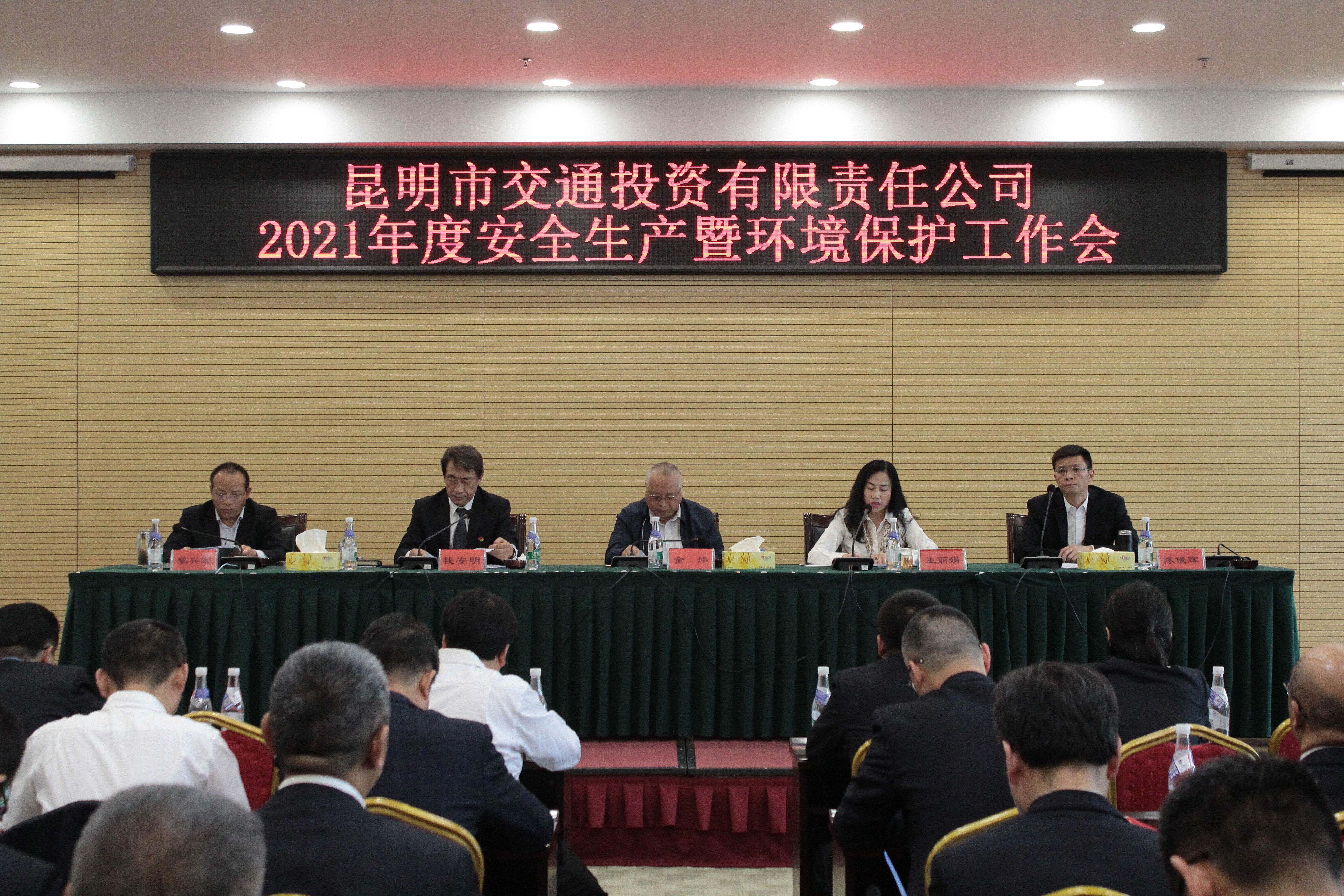 2021年4月28日上午,昆明交投公司组织召开2021年度安全生产暨环境保护工作会。公司总经理金炜、副总经理钱安明、王丽娟、黎兴宏、陈俊辉出席会议,昆明交投公司各部门负责人、下属公司负责人及安全管理人员120余名干部职工参加了会议。