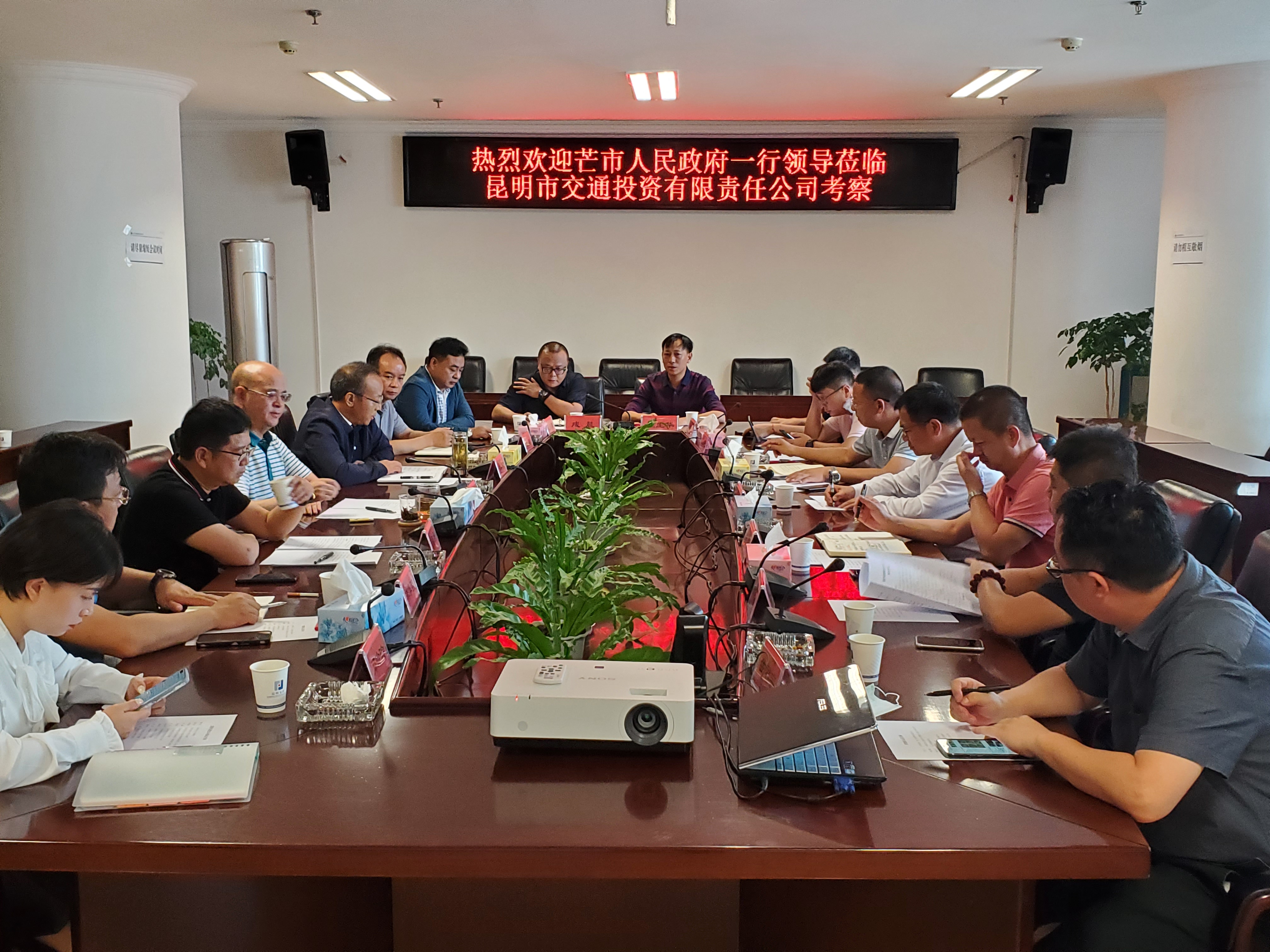 2021年6月26日上午,为学习借鉴先进地区经验,提高芒市城市建设、国有资本监管、国有企业营运能力,由芒市市委常委、常务副市长付正江带队到昆明交通投资有限责任公司(以下简称“昆明交投公司”)进行考察并召开交流座谈会。芒市市政府办公室、市自然资源局、市财政局、市住房和城乡建设局、芒市商贸发展有限公司主要负责人及有关人员陪同。昆明交投公司董事长雷升逵、副总经理黎兴宏、综合管理部、昆明建投建设工程集团有限公司、昆明市智慧停车建设运营有限公司、云南昆交投供应链管理有限公司主要领导出席会议。