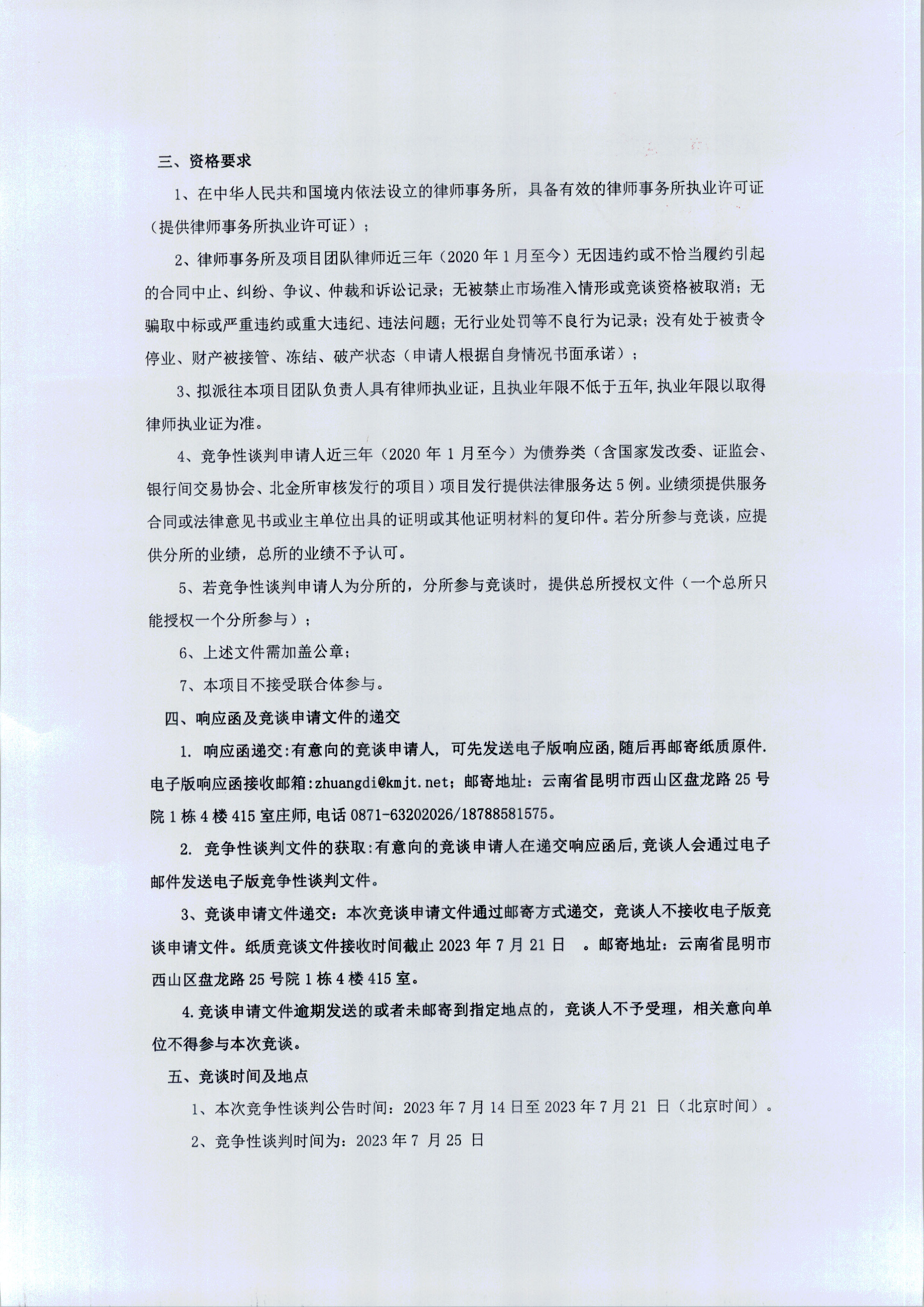关于选聘非公开发行公司债券法律服务机构竞争性谈判公告