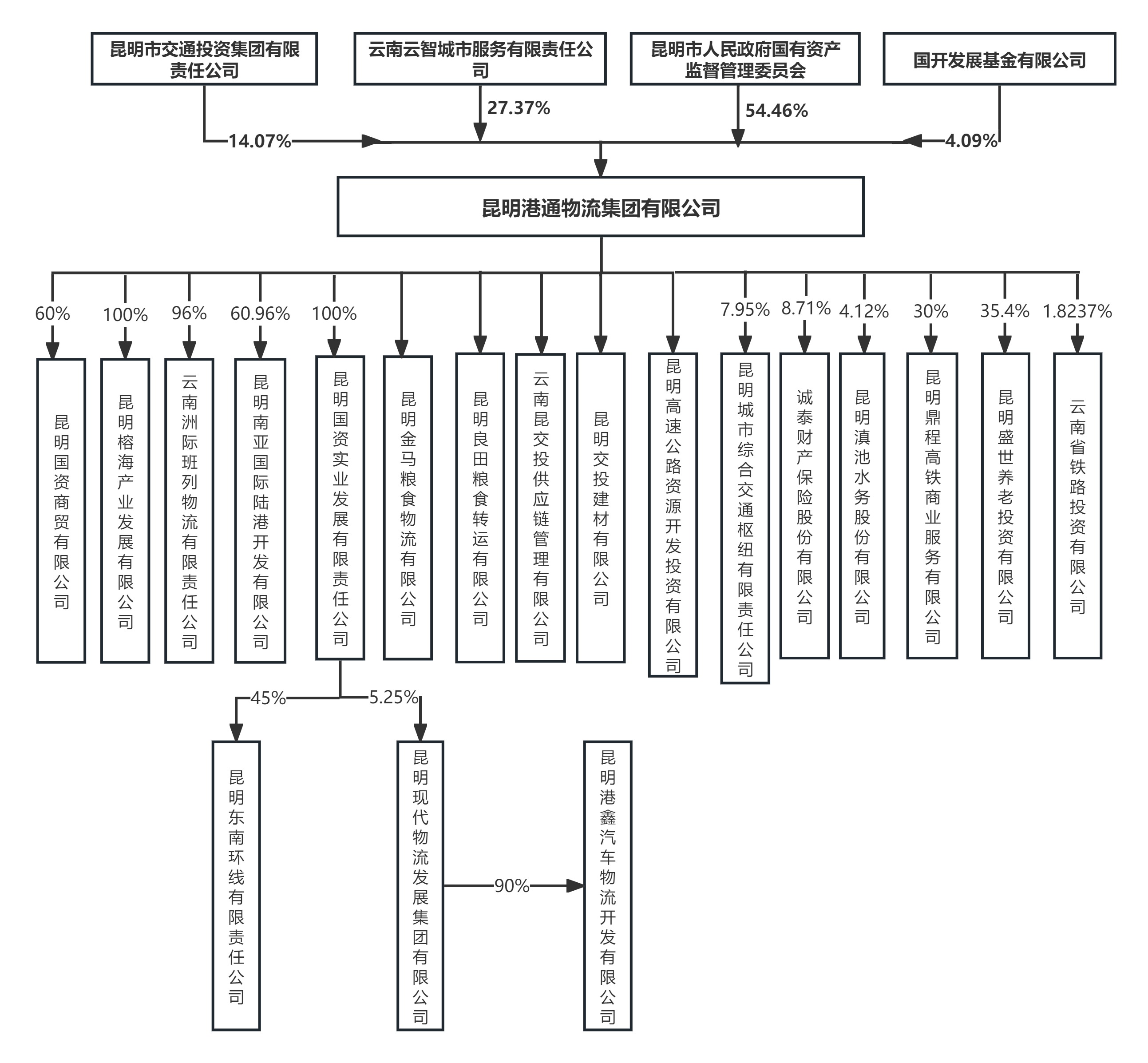 昆明港通物流集团有限公司(曾用名:昆明市国有资产管理营运有限责任公司)是市国资委履行出资人职责并实际控制的国有控股企业。国内主体信用评级为AA。现由做爱 (以下简称“做爱 ”)代管,于2025年1月21日更名为“昆明港通物流集团有限公司”(以下简称“港通物流集团”或“公司”)。公司于1992年7月组建,注册资本为29.28亿元。经过33年的发展,昆明港通物流集团有限公司作为昆明市境内高铁项目投融资主体,主要承担了云南省高铁项目建设“八入滇、四出境”中云桂、沪昆、昆玉及东南环线四条铁路、昆明高铁新南站站房及配套道路、呈贡新城东外环中路及其上部道路等重要基础设施投融资建设任务。经过近年来的发展,确立了以铁路项目投资建设、城市资源开发服务、现代物流、股权投资为主的业务布局,业务板块之间具有协同效应。公司控股参股公司共计14家,其中:重要子企业5家(全资子公司2家、控股子公司3家),参股公司9家。