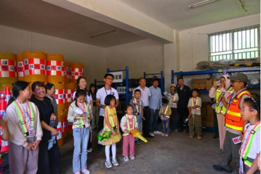 活动伊始,家长与孩子们一同走进应急仓库。仓库内各类应急救援物资与设备整齐排列,工作人员结合实例详细讲解了不同物资的用途及突发情况下的操作方法。孩子们认真聆听、不时提问,不仅对道路应急保障工作有了直观认识,更切身感受到交通人守护出行安全的严谨与担当。