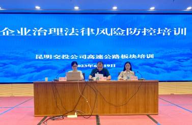 企业治理法律风险防控是企业可持续健康发展的基石,为进一步提升企业治理法律风险防控意识,建立健全企业经营法律风险防范机制,降低企业在经营管理、合同管理以及企业内部治理中的法律风险,2023年6月19日,昆明交...