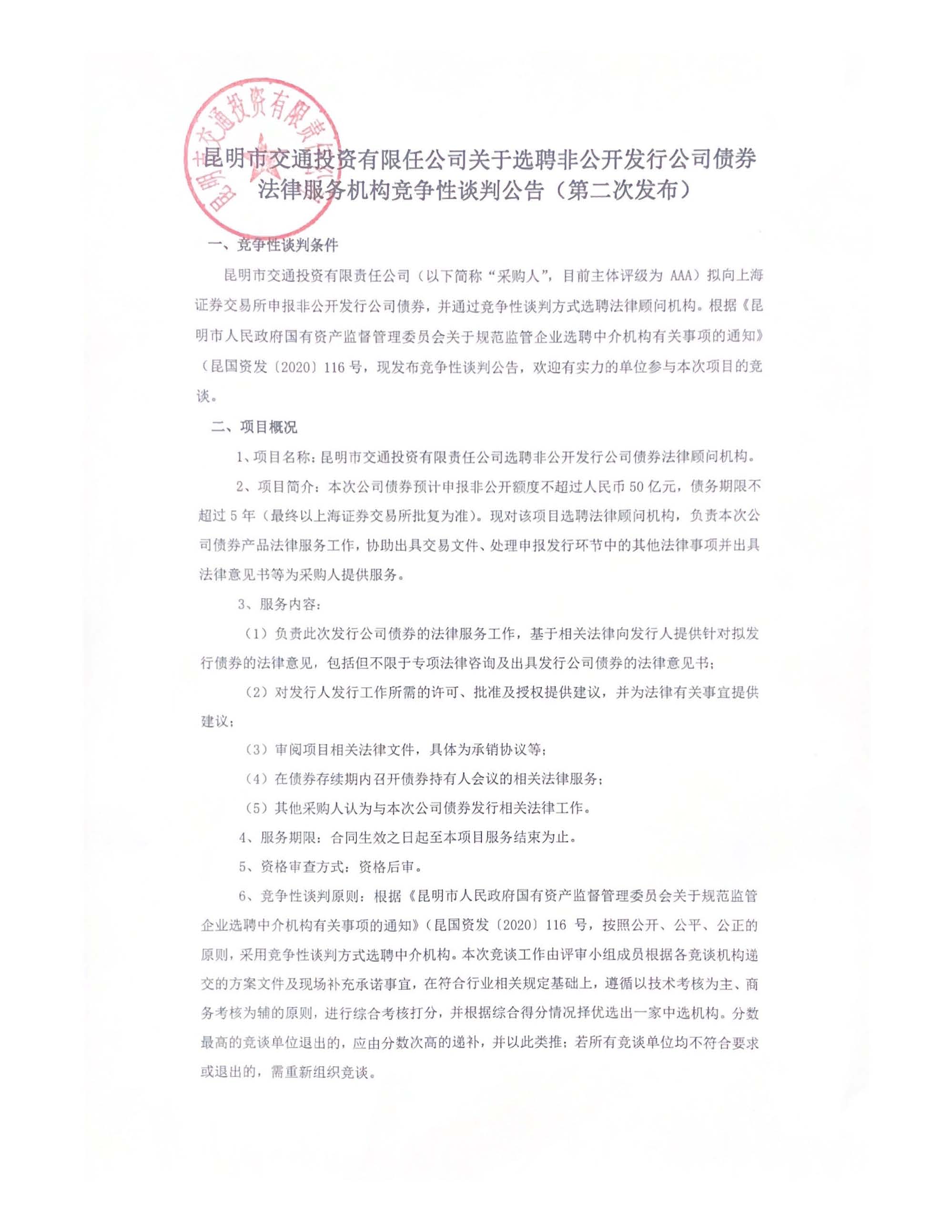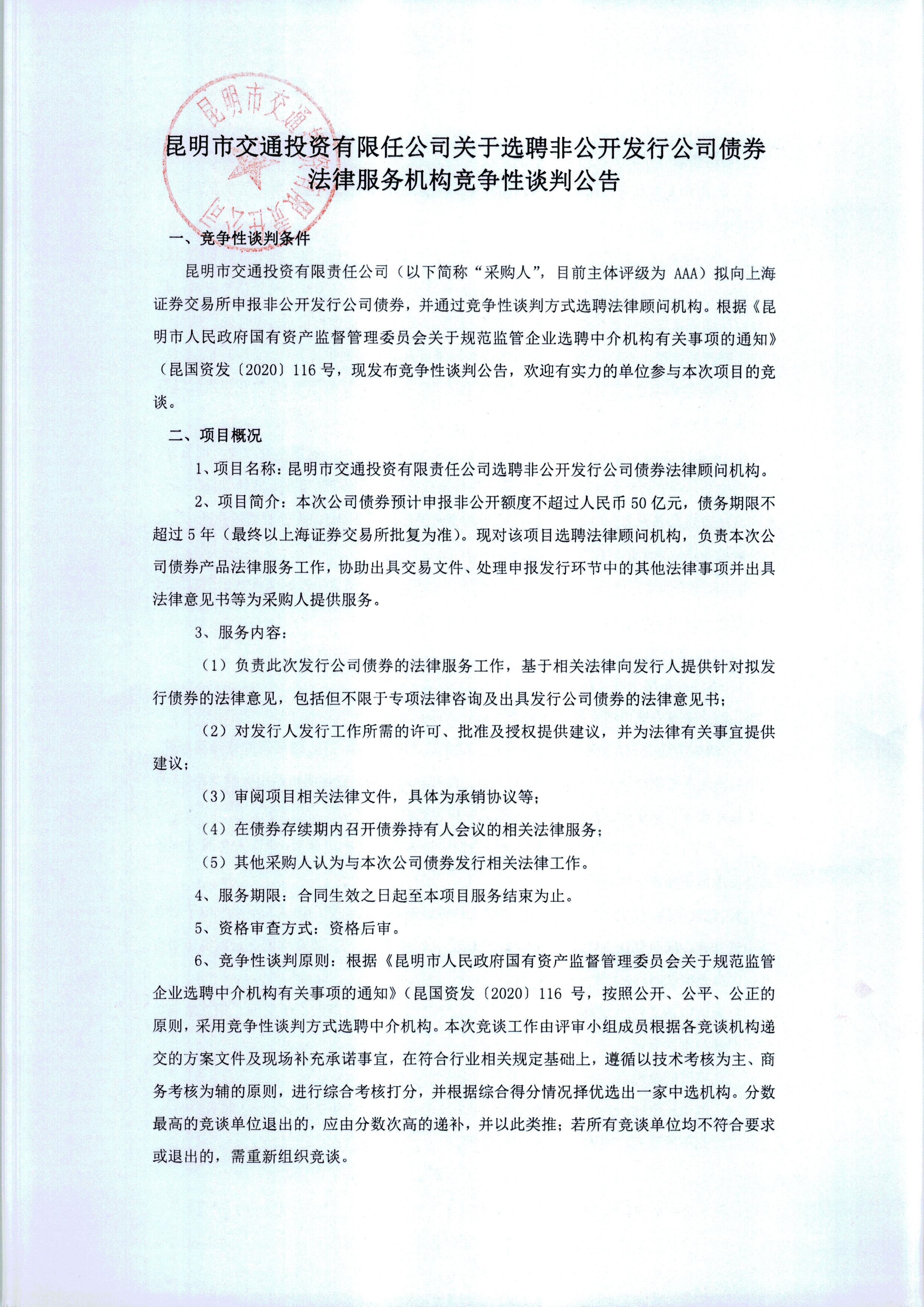 关于选聘非公开发行公司债券法律服务机构竞争性谈判公...