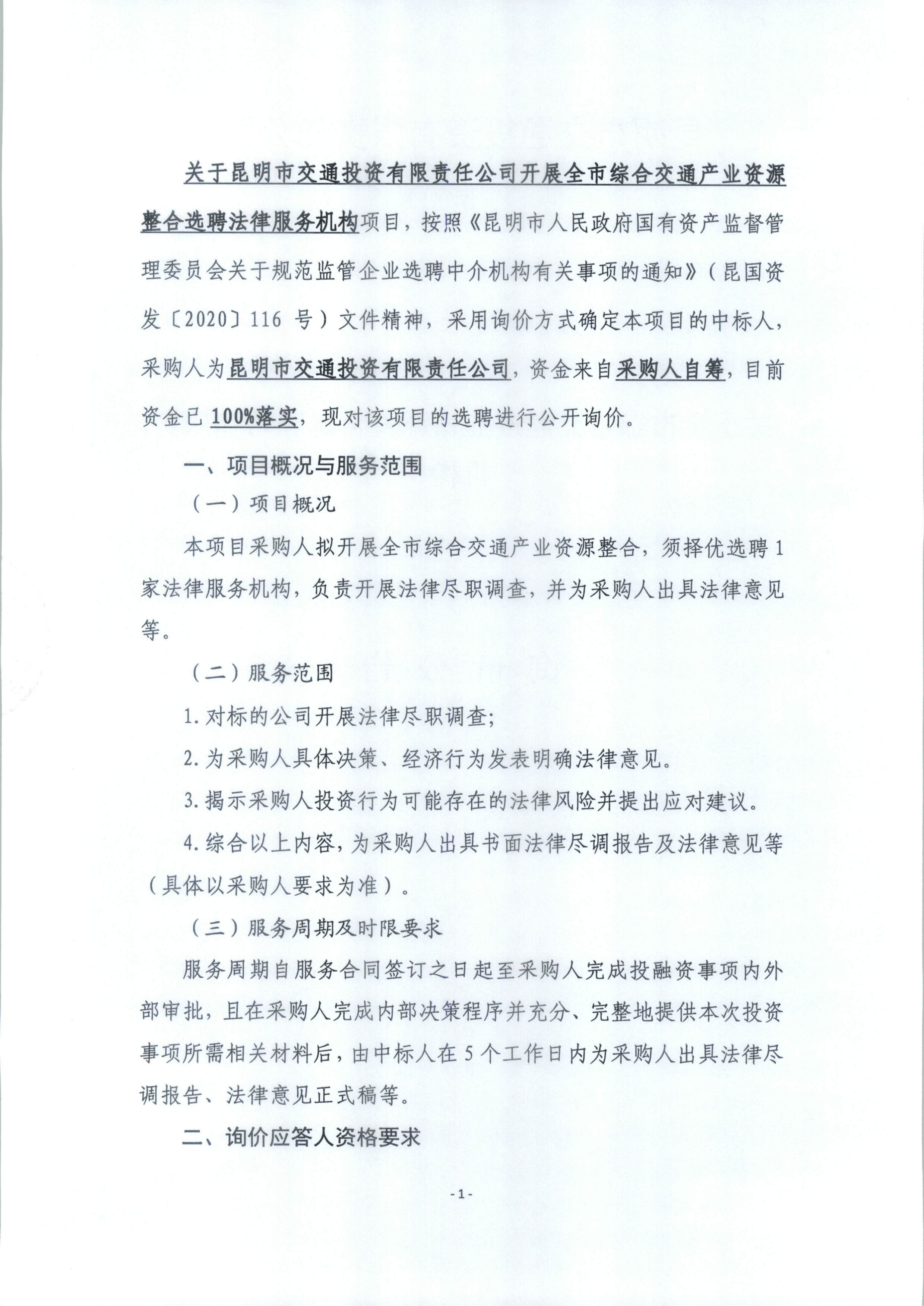 昆明交投公司及下属公司投资后评价咨询服务项目竞争性...