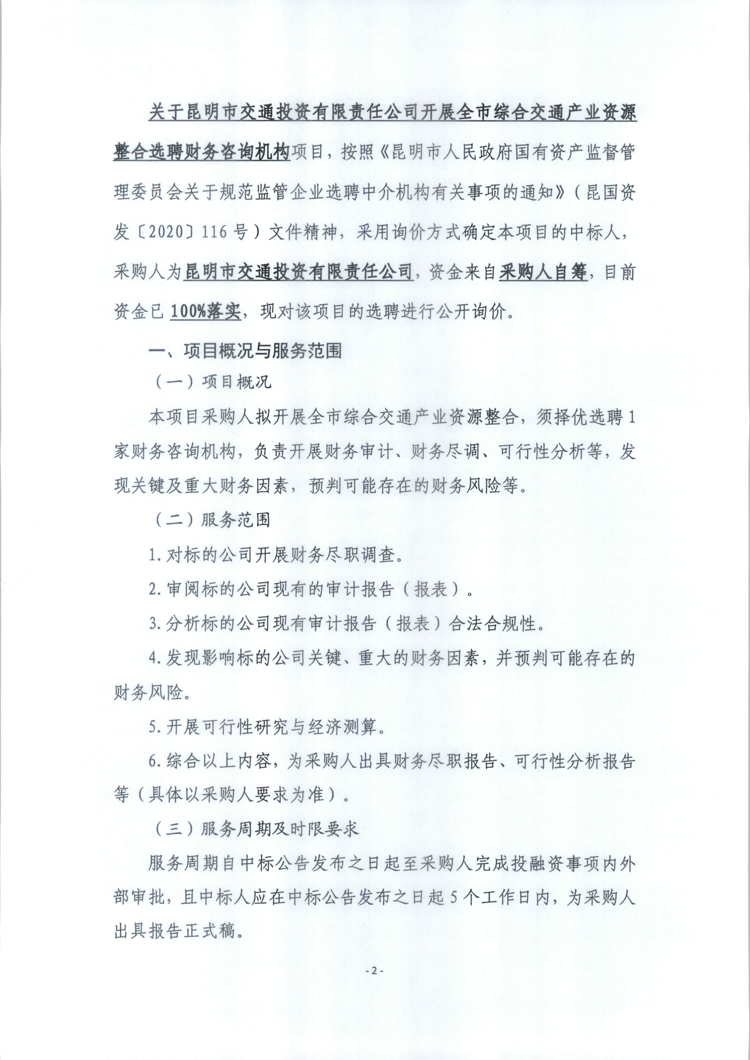 昆明市交通投资有限责任公司选聘非公开发行定向融资工...