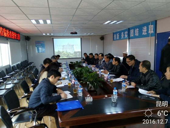 2016年12月7日上午,昆明市安监局办公室主任章智、昆明市国资委规划发展处处长罗东涛等一行8人组成考核组,在长坡泛亚国际物流园区建设施工现场对公司进行2016年度安全生产责任考核。公司总经理金炜、党委副书记薛军及相关工作人员,长坡公司负责人,参建单位昆明二建公司负责人,广州海荣监理负责人等参加了考核汇报会。