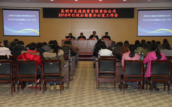 为进一步规范公司行政后勤管理工作,提高工作效率和工作水平,公司于2018年1月3日组织召开了2018年行政后勤暨办公室工作会。会议总结了2017年行政后勤管理工作,表彰了档案管理先进单位。钱安明副总经理在会上做了重要讲话,肯定了交投公司办公室系统取得的成绩,同时结合市委、市政府及公司决策部署,对公司办公室工作提出了新要求,要求公司办公室系统干部职工要进一步统一思想,始终牢记“围绕中心、服务大局”的使命和责任,真抓实干、开拓创新,齐心聚力,履职尽责,以饱满的热情、高昂的斗志,推动公司行政后勤工作创佳绩、上水平。